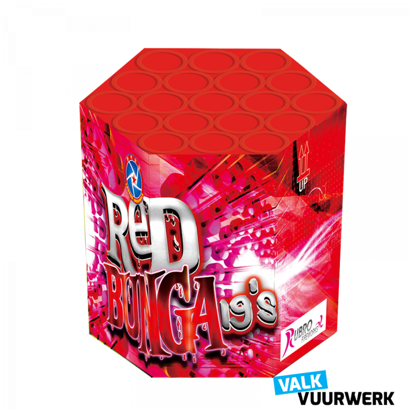 Zware multishot cakes van 19 schots met mega grote effecten, prachtige kleuren en heldere effecten van top kwaliteit.Elk schot is voorzien van een knetterharde burst. Deze cake is voorzien van een groot kaliber .